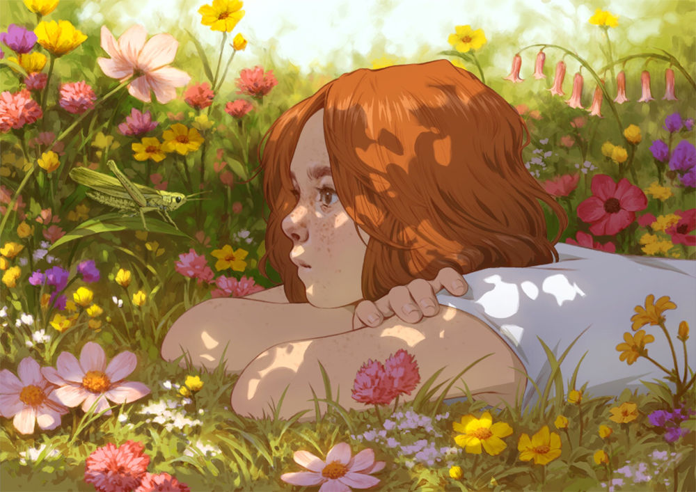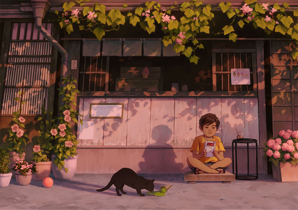 So many of your pieces take me back to the peaceful moments I remember from Miyazaki’s films. The way you translated all that comfort and nostalgia into your own work is my favourite thing about your art. I understand that Studio Ghibli has had a strong influence on you, so please talk to us about your memories of these movies and everything else that makes them so special to you.
